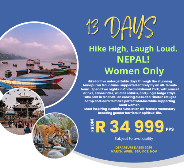 Hike for five unforgettable days through the stunning Annapurna Mountains, supported entirely by an all-female team. Spend two nights in Chitwan National Park, with sunset drinks, canoe rides, wildlife safaris, and jungle lodge stays. Take part in a hands-on cooking class at a Tibetan refugee camp and learn to make perfect MoMos while supporting local women.